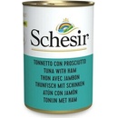 Konzerva s mäsom z tuniaka so šunkou v želé. Doplnkové krmivo pre dospelé mačky.